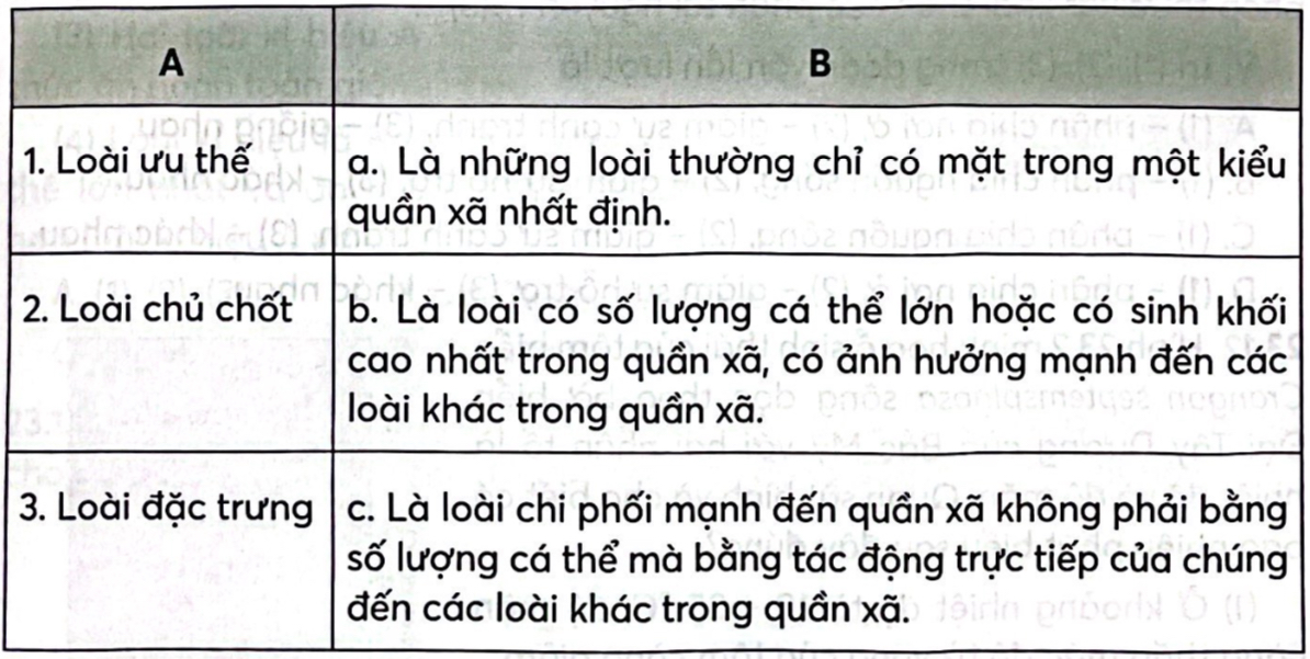 D. có số lượng cá thể lớn hoặc có sinh khối cao nhất trong quần xã, có ảnh hưởng mạnh đến các loài khác trong quần xã.
