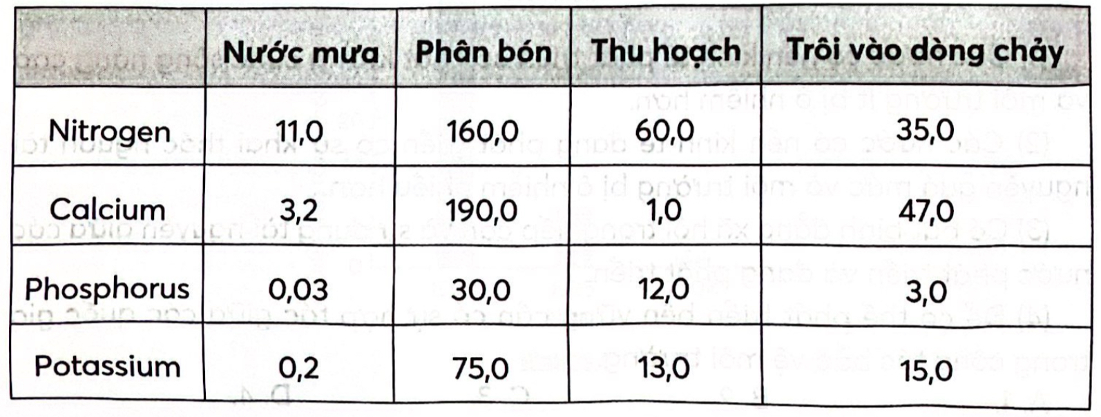 (2) Calcium bị thất thoát nhiều nhất do rửa trôi vào các dòng chảy.