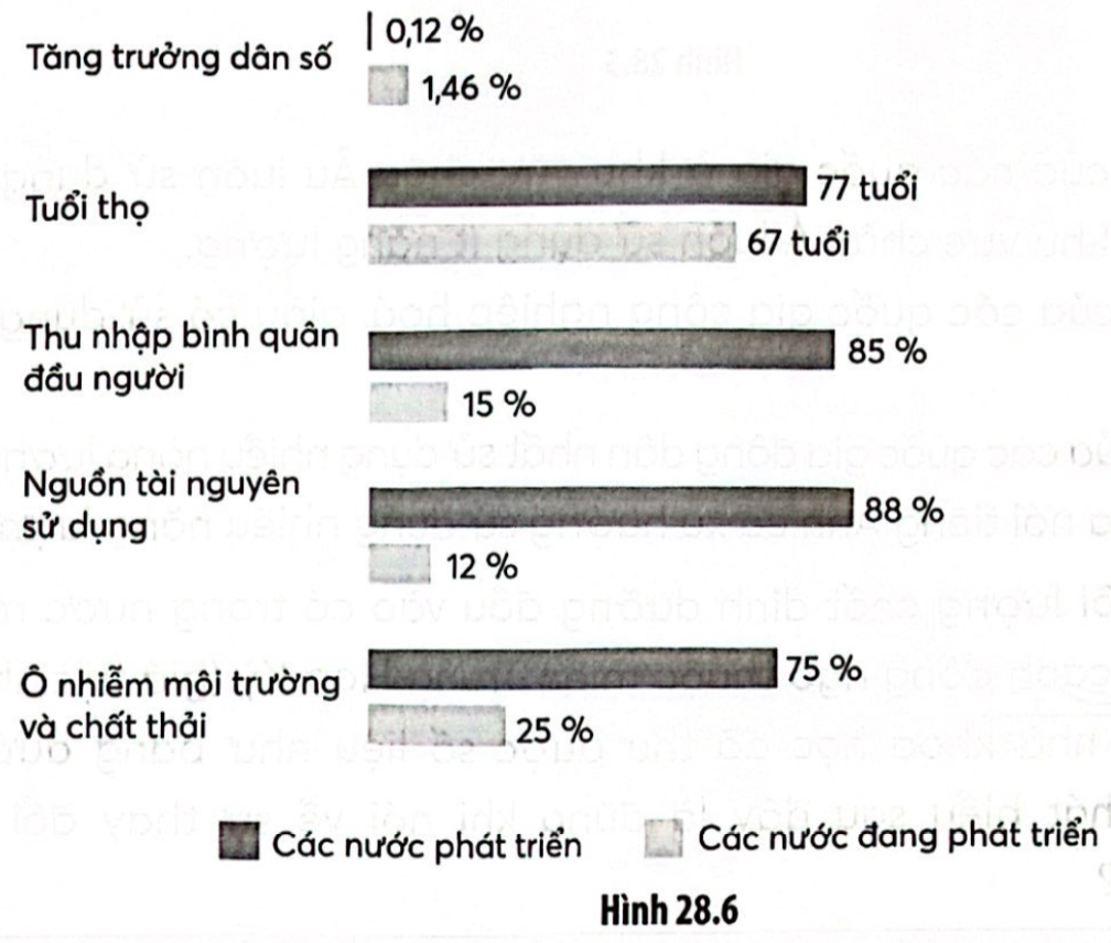 Quan sát thông tin so sánh một số đặc điểm chính của các nước phát triển và đang phát triển trong Hình 28.6 và thấy có 2 phát biểu đúng.