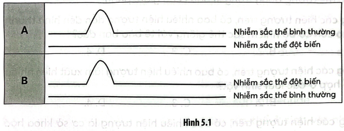 - Hình B: Đột biến lặp đoạn hoặc chuyển đoạn nhiễm sắc thể vì nhiễm sắc thể đột biến dài hơn nhiễm sắc thể bình thường.