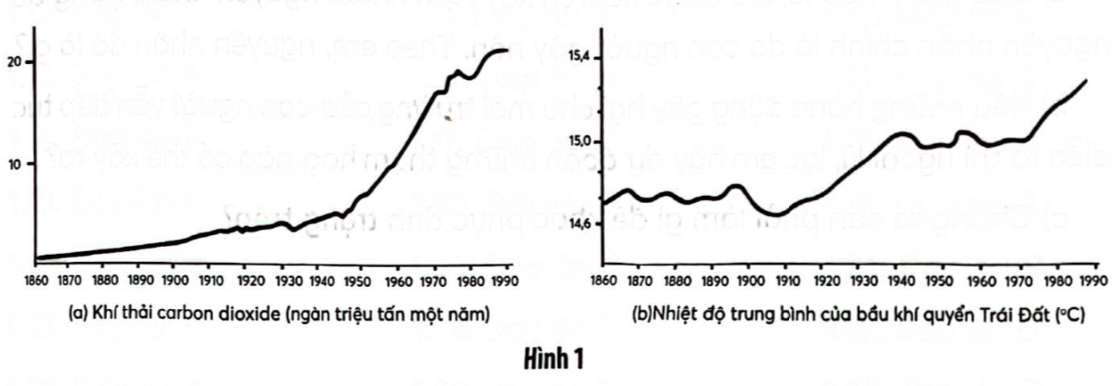 Câu 1: Hiệu ứng nhà kính ngày càng trở nên rõ rệt hơn vào thế kỉ X, minh chứng cụ thể là nhiệt độ trung bình của bầu khí quyển Trái Đất đang ngày một tăng lên. Theo nhiều kết quả nghiên cứu, lượng khí thải CO2 vẫn được coi là nguyên nhân chính gây ra hiện tượng hiệu ứng nhà kính. Một học sinh tên là An đã tỏ ra thích thú với mối liên hệ có thể có giữa nhiệt độ trung bình của bầu khí quyển với lượng khí thải CO2 trên Trái Đất. Bạn ấy đã theo dõi hai đồ thị sau trong một bài báo tại thư viện. Từ hai đồ thị này, bạn An rút ra kết luận rằng sự gia tăng nhiệt độ trung bình của bầu khí quyển Trái Đất chắc chắn là do sự gia tăng của lượng khí thải CO2.