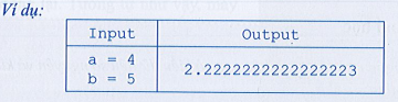 Một giờ vòi thứ nhất chảy được 1a bể, một giờ vòi thứ hai chảy được 1b bể. Một giờ cả hai vòi cùng chảy được (1a+1b) bể. Như vậy, thời gian cả hai vòi cùng chảy đầy bể là 1: (1a+1b). Tham khảo chương trình sau: