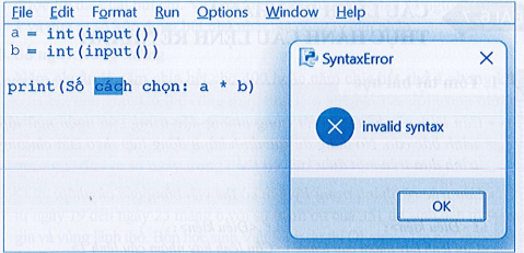 Lỗi ở câu lệnh: print (Số cách chọn: a * b).