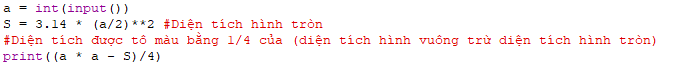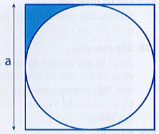 Câu F26 trang 27 SBT Tin 10: Một tờ giấy mĩ thuật hình vuông có cạnh là a cm như hình bên. Vẽ đường tròn nội tiếp hình vuông. Em hãy lập trình nhập vào giá trị biến a và đưa ra màn hình diện tích mảnh giấy được tô màu (đơn vị cm2).