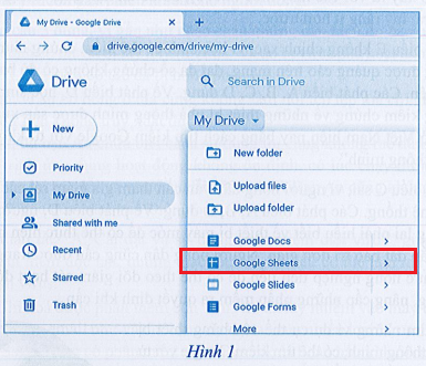 Drive của tôi/ Google Trang tính hoặc My Drive/Google Sheets (Hình 1).