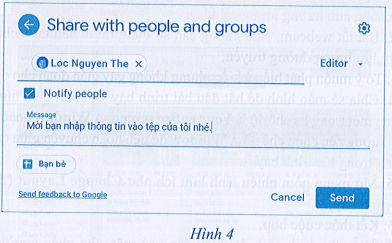 - Gõ địa chỉ email của một vài bạn trong lớp vào mục Share with people and groups (Hình 3).