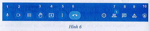Trong cuộc họp em có thể sử dụng các nút trong Hình 6 (đặt con trỏ chuột vào từng nút sẽ nhìn thấy lời hướng dẫn tương ứng được tự động hiển thị): Hình 5