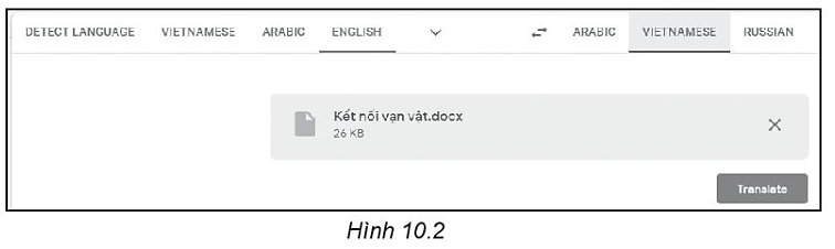 Câu 10.1 trang 23 SBT Tin học 10: Thực hành: Em hãy sử dụng ứng dụng dịch Google Translate để thực hiện: