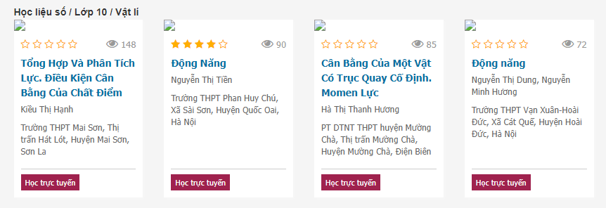 Hướng dẫn: Ví dụ khai thác bài học trực tuyến về Vật lí lớp 10.