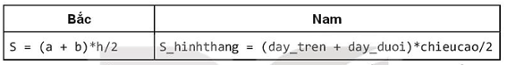 Câu 17.9 trang 37 SBT Tin học 10: Hai bạn Bắc và Nam được yêu cầu viết công thức tính diện tích hình thang trong Python theo mấy câu thơ sau: "Muốn tìm diện tích hình thang/Đáy trên, đáy dưới ta mang cộng vào/Rồi đem nhân với chiều cao/Chia đôi lấy nửa thế nào cũng ra". Kết quả như sau: