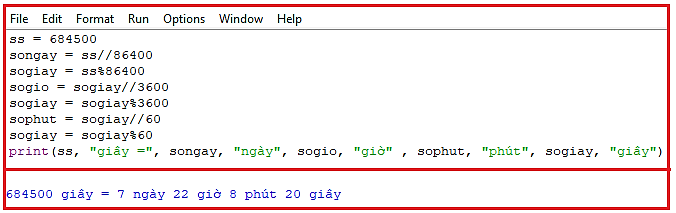 Câu 17.12 trang 37 SBT Tin học 10: Viết chương trình thực hiện việc đổi số giây ss cho trước (ví dụ ss = 684 500) sang số ngày, giờ, phút, giây, in kết quả ra màn hình.