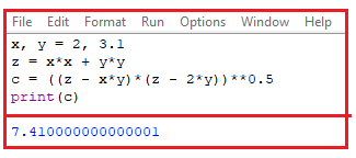 >>> c = ((z - x*y)*(z - 2*y))**0.5