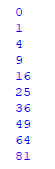 Dãy 0, 1, 4, 9, ..., 81 (bình phương các số 0, 1, 2, ...,9).