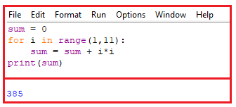 b) Kết quả không thay đổi. Vì giá trị i khi đó sẽ bắt đầu từ 0, tổng các bình phương của các số 0, 1, 2, ..., 10 vẫn chính là tổng các bình phương của các số 1, 2, ..., 10.