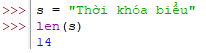 Câu 24.1 trang 50 SBT Tin học 10: Giả sử s = "Thời khoá biểu" thì len(s) bằng bao nhiêu?