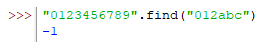 Lệnh find( ) trả về vị trí của xâu con trong xâu mẹ. Do không tìm thấy nên trả về giá trị -1.