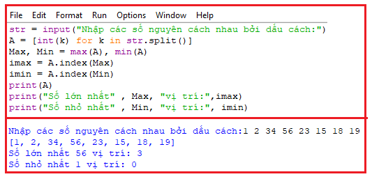 print("Số lớn nhất" , Max, "vị trí:", imax)