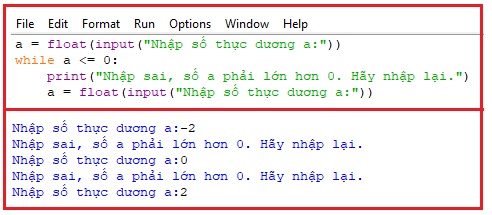 Nếu số đã nhập nhỏ hơn hoặc bằng 0 thì thông báo: Nhập sai, số a phải lớn hơn 0. Hãy nhập lại.