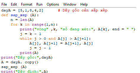 dayA = [5,1,8,4,2] # Dãy gốc cần sắp xếp