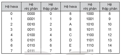 - Giá trị tương ứng của các chữ số trong hệ hexa tương ứng với các giá trị nào trong hệ thập phân và hệ nhị phân?