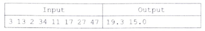 print (format (mean (A), ".1f"), format (median (A), ".1f"))