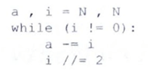 Vì giá trị của i bị giảm đi một nửa sau mỗi bước và vòng lặp sẽ dừng khi i = 0, nên độ phức tạp của chương trình là O(log,N).