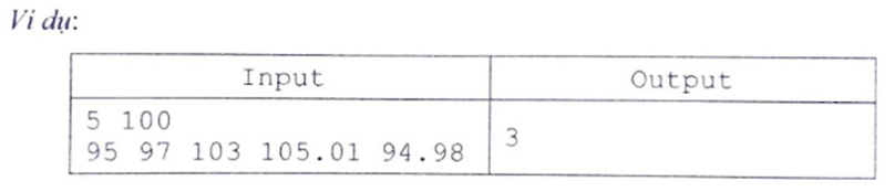 • Dòng tiếp theo chứa n số thực dương a, a, a,...., cho có tối đa hai chữ số ở phần thập phân).