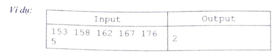 Kết quả: Hiển thị ở thiết bị ra chuẩn một số nguyên là số lượng cặp chỉ số (i, j) để h − h = d (0<i<j<n-1).