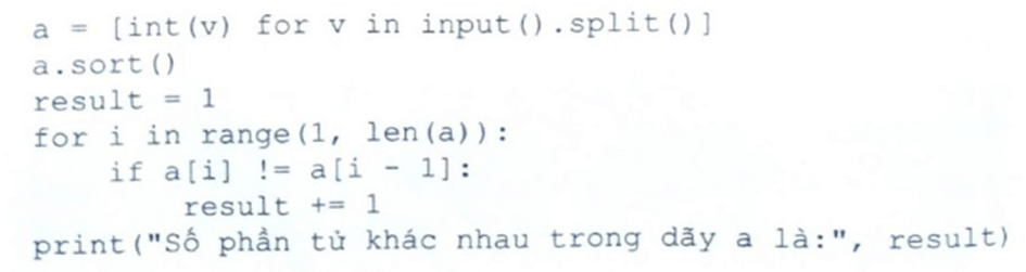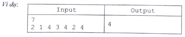 Em có thể sắp xếp theo thứ tự dãy 4 rồi thực hiện phép duyệt từ trái sang phải để “lướt” qua các đoạn phần tử bằng nhau: