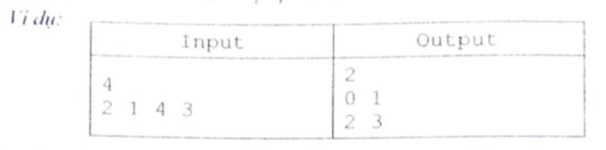 - Có dòng sau, dòng thứ i in ra hai số a," (0Śu<"< n) cho biết bạn sẽ đội giá trị của hai vị trí u, v cho nhau.