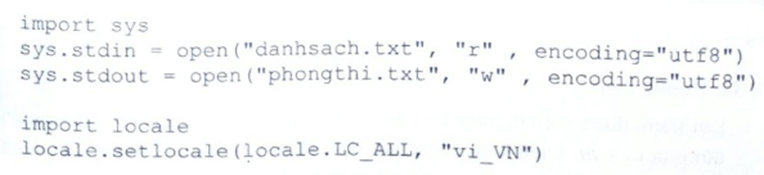 sys.stdin = open("danhsach.txt", "r", encoding="utf8") sys.stdout open ("Tudien.txt", "w", encoding="utf8") import locale