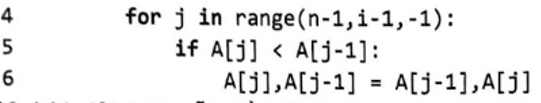 while j>e and A[j] < A[j-1]: