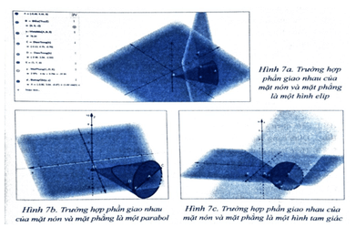 Trả lời: Tuỳ theo tương quan vị trí của mặt phẳng với mặt nón, có thể phần giao là hình elip (Hình 7a), hình parabol (Hình 7b) hoặc hình tam giác (Hình 7).