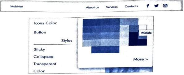 Bước 2. Điều chỉnh các thông số thiết lập của thanh điều hướng. Mở bảng thiết lập thông số thanh điều hướng và điều chỉnh chọn Color trong mục Styles là #fafafa như hình bên: