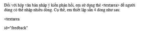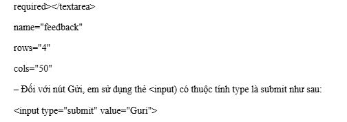 Câu 3. Em hãy tạo biểu mẫu cho phép người dùng nhập ý kiến phản hồi như Hình 2.