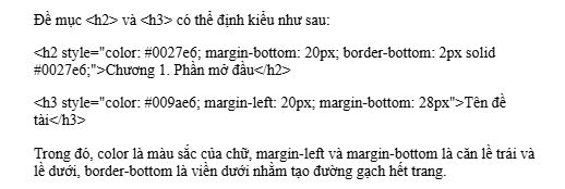 Câu 4. Em hãy định kiểu cho các đề mục trong Bài F2.2 bằng cách viết mã lệnh CSS cho riêng từng phần tử HTML.