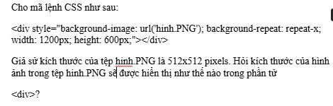 Mặt khác, thuộc tỉnh background-repeat: repeat-x làm cho ảnh nền được lặp lại theo phương ngang.