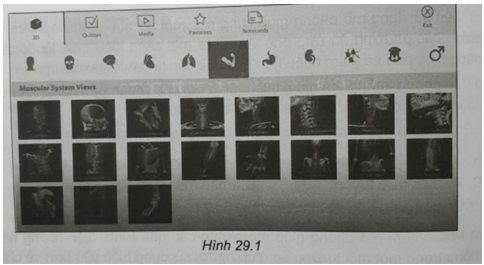 Câu 1.9: Trong lĩnh vực y học, việc sử dụng phần mềm mô phỏng giải phẫu là một công cụ mạnh mẽ giúp sinh viên y khoa và các chuyên gia y tế hiểu sâu hơn về cấu trúc cơ thể con người và các quá trình sinh học. Phần mềm mô phỏng giải phẫu thường cung cấp các mô hình 3D chi tiết về các cơ quan, cấu trúc và mạch máu trong cơ thể con người. Nhờ vào đồ hoạ chất lượng cao, người sử dụng có thể quan sát từ góc độ khác nhau và tương tác với các bộ phận cụ thể để hiểu rõ hơn về chúng. Hình là giao diện tính năng mô phỏng giải phẫu hệ cơ của một phần mềm mô phỏng giải phẫu sử dụng trong y khoa. Theo em, phần mềm mô phỏng này có những lợi ích gì? Hãy trình bày và phân tích ngắn gọn các lợi ích đó.