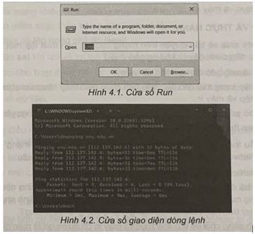 Để làm điều này, trên máy tính chạy hệ điều hành Windows hãy nhấn tổ hợp phím Windows + R để làm xuất hiện cửa sổ Run (Hình 4.1) để chạy trực tiếp một lệnh. Gõ lệnh cmd để mở cửa sổ giao diện dòng lệnh cmd như Hình 4.2