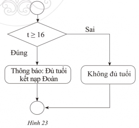 F10. Học sinh cấp trung học bắt đầu được xét kết nạp Đoàn khi đủ 16 tuổi. Hãy dùng cấu trúc rẽ nhánh để mô tả thuật toán kiểm tra điều kiện kết nạp Đoàn bằng cách liệt kê các bước hoặc sơ đồ khối.
