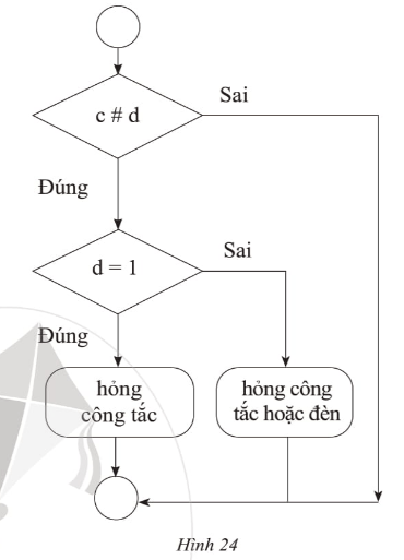 F11. Có thể biểu diễn các trạng thái của hệ thống gồm một công tắc và một đèn bằng hai bit. Bằng cách liệt kê các bước hoặc vẽ sơ đồ khối, hãy mô tả thuật toán nhận biết hệ thống hỏng gì từ giá trị của hai bit đó.