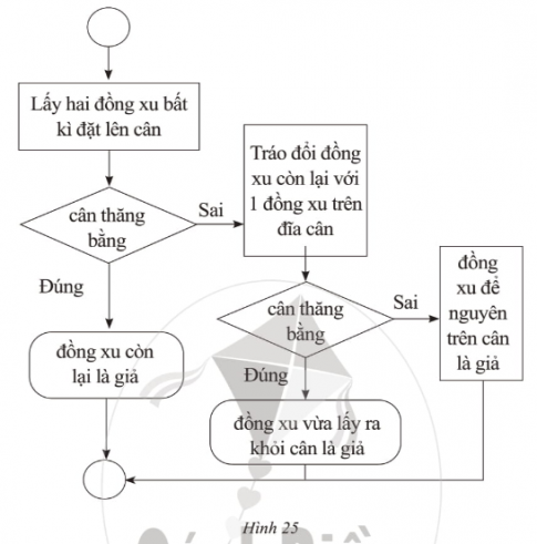 1) Thuật toán: Sử dụng cân thăng bằng tìm đồng xu giả (Hình 25).