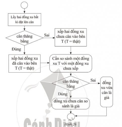 2) Thuật toán: Sử dụng cân thăng bằng tìm đồng xu giả (Hình 26).