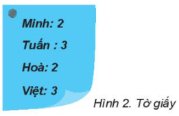 Theo em trên tờ giấy là có thể là viết về tỉ số trận thắng cờ vua trong nhóm của các bạn. Vậy chúng ta có thông tin: Minh thắng 2 ván, Tuấn thắng 3 ván, Hòa thắng 2 ván, Việt thắng 3 ván.