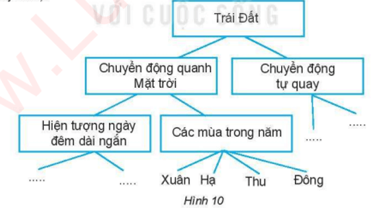 Câu 10.9 trang 39 SBT Tin học lớp 6: Em hãy sử dụng sơ đồ tư duy để trình bày nội dung Chương 2. Trái đất – Hành tinh của Hệ Mặt Trời trong sách Lịch sử và Địa lí 6 theo gợi ý trong Hình 10. Sơ đồ tư duy sẽ giúp em ôn tập nhanh chóng và hiệu quả (có thể tạo theo hai cách: Tạo thủ công trên giấy hoặc dùng phần mềm máy tính)