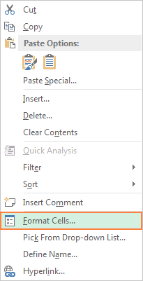 - Chuột phải vào vùng cần định dạng và chọn trong menu này Format Cells…