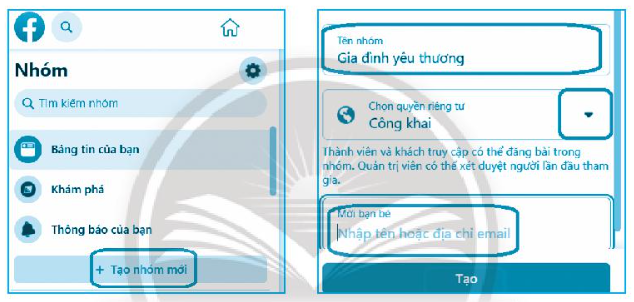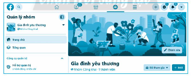 Bài 7 trang 15 Sách bài tập Tin học 7: Em hãy thực hành tạo một nhóm kín với tên “Gia đình yêu thương”, sau đó thêm tài khoản các thành viên gia đình, bạn bè mình vào nhóm theo các bước hướng dẫn dưới đây.