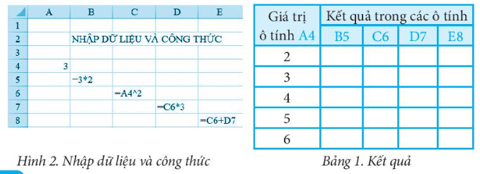 Bài 7 trang 32 Sách bài tập Tin học 7: Khởi động MS Excel thực hiện nhập dữ liệu và công thức như Hình 2