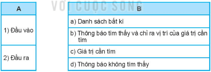 Câu 14.7 trang 50 SBT Tin học 7: Em hãy ghép mỗi nội dung ở cột A với những nội dung phù hợp ở cột B để xác định chính xác đầu vào và đầu ra của thuật toán tìm kiếm tuần tự.