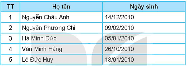 Câu 14.9 trang 51 SBT Tin học 7: Cho danh sách học sinh sau đây: